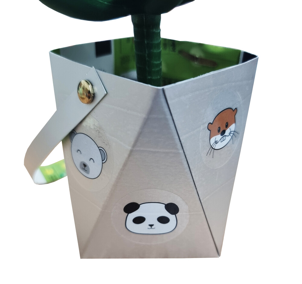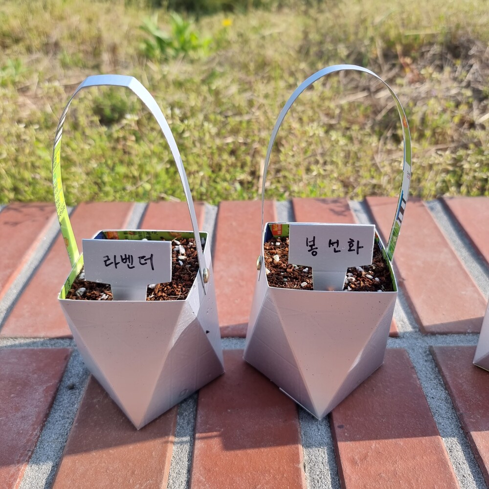 구성: 설명도안, 화분 도안, 식물이름표, 손잡이, 할핀, 화분깔망, 양면테이프, 멸종위기 동물스티커
